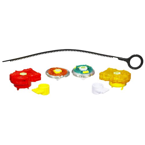 Turn up the excitement with these awesome customizable tops. Choose among each top's five pieces and use the assembly tool to engineer just the right performance. Battling on a high-profile track? Your Rock Leone top will need its Spin Track: 145 piece. Need aggressive movement? Be sure to include the Performance Tip: F on your Flame Bull top. Then, set each up on their launchers, pull the ripcords and send them spinnin'g into action. Sharpen your skills or battle it out in any Beystadium arena. The Rock Leone top includes Face Bolt, Energy Ring: Leone, Fusion Wheel: Rock, Spin Track: 145 and Performance Tip: WB pieces and comes with a Ripcord Launcher and assembly tool. The Flame Bull top includes Face Bolt, Energy Ring: Bull, Fusion Wheel: Flame, Spin Track: 100 and Performance Tip: F pieces and comes with a Ripcord Launcher and assembly tool.